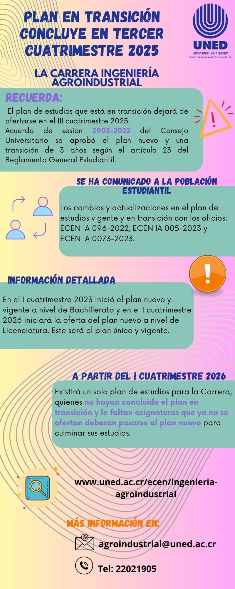 Los documentos se envían al correo de la carrera: agroindustrial@uned.ac.cr